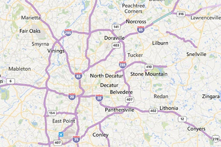 Clicking on the arrows representing north, south, east and west will move the map location in the selected direction. You can also click and drag the map to adjust the screen. To rotate the view, click and drag the navigation panel compass wheel until the map view meets your specifications. The navigation panel will be light gray while you are working in other parts of the map, but will “brighten” to white when you mouse over it.