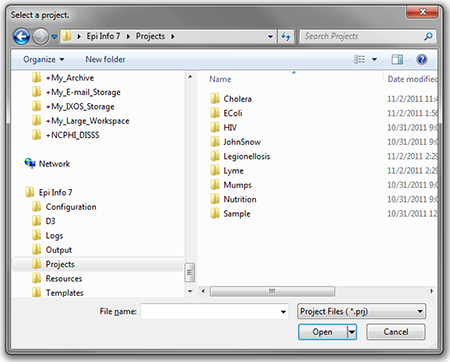 - Navigate to the Projects subfolder. A list of projects appears.