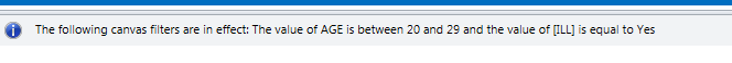 The Advanced mode allows you to type the desired data filter string into the text box provided. Once the filter is applied, the canvas will only display the records that meet the specified condition(s).