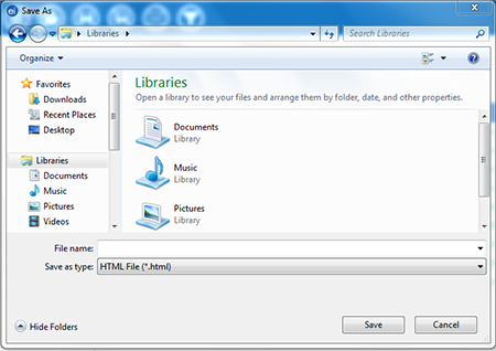 - Right click on the canvas, select Save Output as HTML. The Save As dialog box appears.