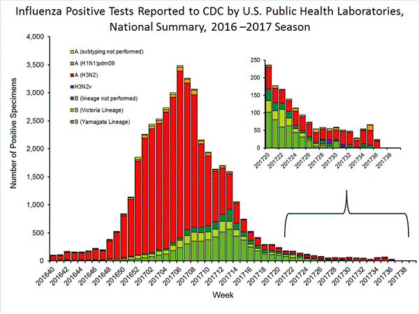 The results of tests performed by clinical laboratories nationwide are summarized below. Data from clinical laboratories (the percentage of specimens tested that are positive for influenza virus) are used to monitor whether influenza activity is increasing or decreasing.
