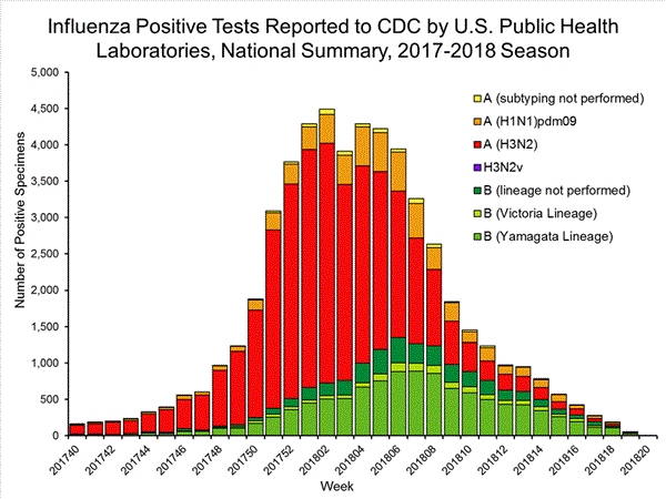 The results of tests performed by public health laboratories nationwide are summarized below. Data from public health laboratories are used to monitor the proportion of circulating influenza viruses that belong to each influenza subtype/lineage.