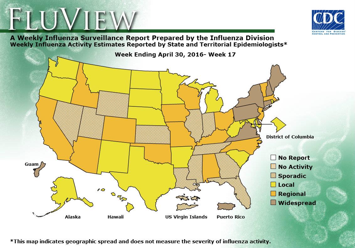 During week 17 (April 24-30, 2016), influenza activity decreased in the United States.