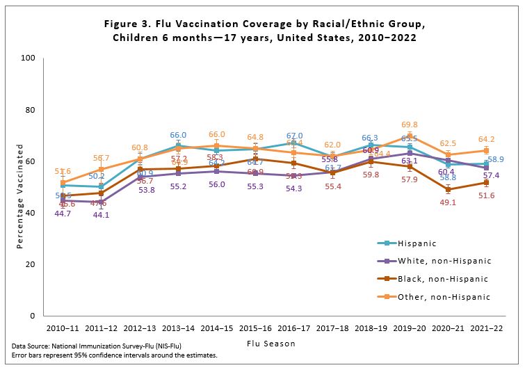 - Flu Vaccination Coverage by Race/Ethnicity and Age Group, Children, United States, 2021–22 Season [15 KB]