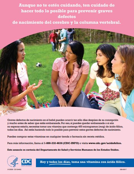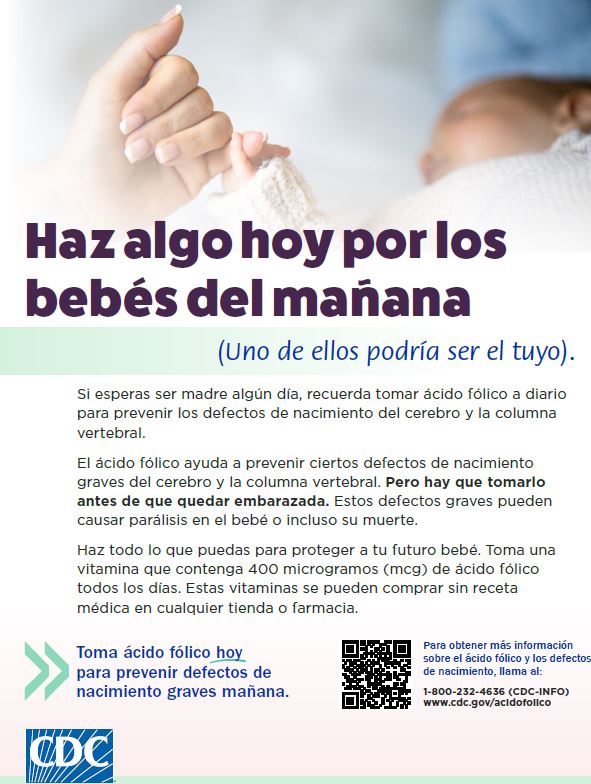 - CDC's free Spanish resources help educate and support patients in understanding the importance and benefits of folic acid.