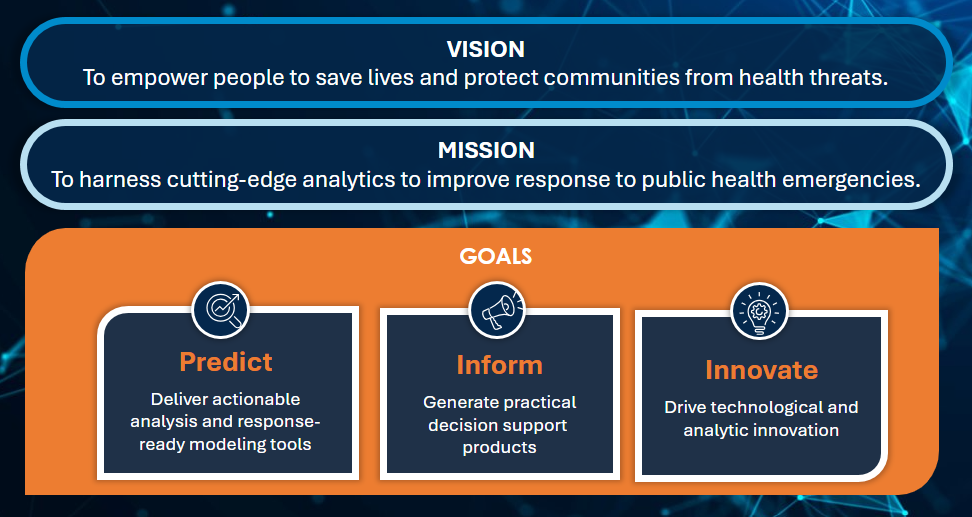 - Producing data-driven models, forecasts, and simulator to predict the course of disease outbreaks.