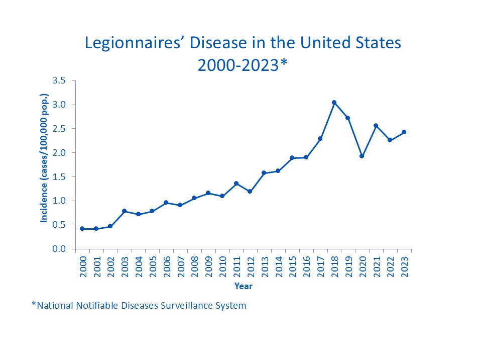 In general, reported cases of Legionnaires' disease have been increasing since the early 2000s, with a peak in 2018. While reported cases dropped during the first year of the COVID-19 pandemic, they rebounded in 2021.