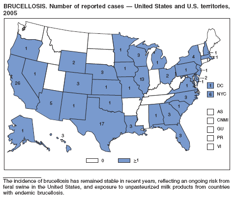 Data in the Summary were derived primarily from reports transmitted to CDC from health departments in the 50 states, five territories, New York City, and the District of Columbia. Data were reported for MMWR weeks 1--52, which correspond to the period for the week ending January 8, 2005, through the week ending December 31, 2005. More information regarding infectious notifiable diseases, including case definitions, is available at http://www.cdc.gov/epo/dphsi/phs.htm. Policies for reporting notifiable disease cases can vary by disease or reporting jurisdiction. The case-status categories used to determine which cases reported to NNDSS are published, by disease or condition, and are listed in the print criteria column of the 2006 NNDSS event code list (available at http://www.cdc.gov/epo/dphsi/phs/files/NNDSSeventcodelistJanuary2006.pdf).