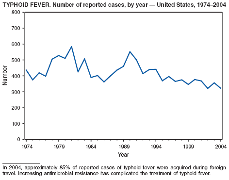 Steinberg EB, Bishop RB, Dempsey AF, et al. Typhoid fever in travelers: who should be targeted for prevention? Clin Infect Dis 2004;39:186--91.