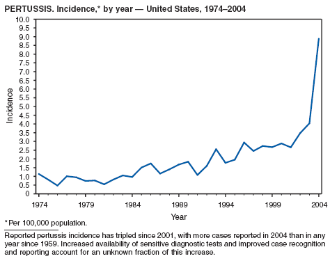 CDC. Pertussis---United States, 2001--2003. MMWR 2005;54:1283--6.