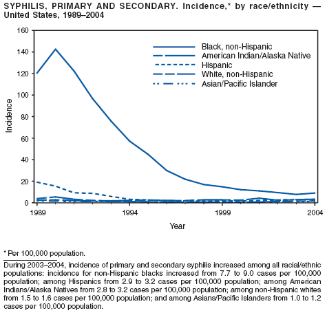 CDC. Primary and secondary syphilis---United States, 2002. MMWR 2003;52:1117--20.
