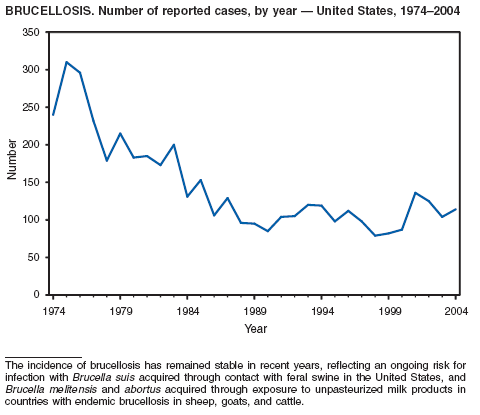 The Highlights section presents noteworthy epidemiologic and prevention information for 2004 for selected diseases and additional information to aid in the interpretation of surveillance and disease-trend data. Part 1 contains tables showing incidence data for the nationally notifiable diseases during 2004.* The tables provide the number of cases reported to CDC for 2004 nationwide as well as the distribution of cases by geographic location and the patient's demographic characteristics (age, sex, race, and ethnicity). Part 2 contains graphs and maps that depict summary data for certain notifiable diseases described in tabular form in Part 1. The Selected Reading section presents general and disease-specific references for notifiable infectious diseases. These references provide additional information on surveillance and epidemiologic concerns, diagnostic concerns, and disease-control activities.