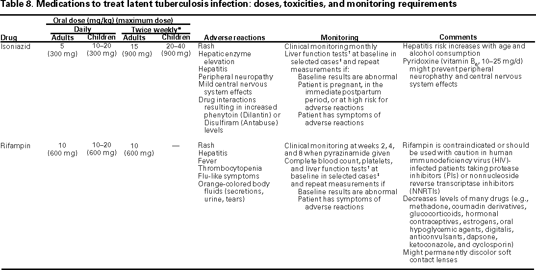 149. Villarino, M. E., R. Ridzon, P. C. Weismuller, M. Elcock, R. M. Maxwell, J. Meador, P. J. Smith, M. L. Carson, and L. J. Geiter. 1997. Rifampin preventive therapy for tuberculosis infection: experience with 157 adolescents. Am. J. Respir. Crit. Care Med. 155:1735--1738.