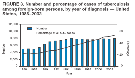 TB Control at the U.S.-Mexican Border The U.S.-Mexican border presents specific challenges to TB control. Four U.S. states (California, Arizona, New Mexico, and Texas) and six Mexican states (Baja California Norte, Sonora, Chihuahua, Coahuila, Nuevo León, and Tamaulipas) comprise the U.S.-Mexican border, and an estimated 1 million persons cross the border daily. In the six Mexican border states, estimated annual TB incidence is 27.1 cases/100,000 population, compared with 5.1 cases/100,000 population in the United States (359). In 1999, Mexico was the country of origin for 23% of foreign-born persons in the United States with reported TB, and 75% of those cases were reported from the four U.S. border states. In 1996, those same states reported 83% of TB cases among foreign-born Hispanics (360). The high rate of TB at the border, the substantial number of border crossings, the substantial geographic area involved, and the prevalent cultural and linguistic barriers make TB control a challenge in this region. Recommendations to improve TB control at the U.S.-Mexican border have been published (361). These recommendations include use of a binational case definition and development of a binational registry of TB cases, improvements in clinical care of binational TB patients and close contacts by cross-border case-management strategies, development of performance indicators for these activities, and setting research priorities (361). Basis for Recommendations on TB Control Among Foreign-Born Persons Surveillance. The inability to distinguish imported TB present at the time of entry of foreign-born persons into the United States from domestically occurring disease obscures the progress that certain states and cities have made in TB control. Standardized reporting of new TB cases does not allow separating TB among foreign-born persons that is present at the time of entry from cases that arise during residence in the United States. This is more than a semantic distinction because cases of TB that occur among short-term visitors and workers, students, and unauthorized aliens are counted as U.S. incident cases even though a substantial number are imported (115). Surveys using sputum cultures indicate that 4%--13% of immigrants and refugees with Class B1 status have TB disease at the time of entry (279). TB present at the time of entry is likely to contribute to the higher incidence rates of TB noted among foreign-born persons in the first 2 years after arrival (115). The importance of imported cases and the need to distinguish them from domestic cases has also been demonstrated in the smallpox, polio, and measles eradication efforts in North America. Case detection. Multiple factors common to the experience of foreign-born persons in the United States might lead to delays in the detection of TB. Preexisting culturally derived beliefs about TB might serve as a disincentive to seek health care when symptoms of TB are experienced (18,279). Also, foreign-born persons wishing to receive a medical evaluation might encounter financial, linguistic, or other barriers to access (19). Once medical services are sought, foreign-born persons are likely to receive their evaluation from certain kinds of health-care providers (e.g., foreign-born physicians or those working in community health centers or hospital EDs) rather than from TB clinics conducted by public health agencies. These challenges to optimal case detection among foreign-born persons will require 1) targeted public education for foreign-born populations at high risk to explain that TB is a treatable, curable disease; 2) better access to medical services, especially for recently arrived immigrants and refugees; and 3) maintenance of clinical expertise in the diagnosis and management of TB among medical practitioners (Box 1). The TB-screening process for visa applicants (i.e., identification of persons with abnormal chest radiographs) has provided opportunities for active case detection in follow-up evaluations in the United States. Data derived from programs that have sought to identify active TB cases on the basis of positive sputum cultures for M. tuberculosis among immigrants with Class B notification status indicate that 3%--14% of the approximately 6,000 immigrants with Class B1 status who enter the United States each year and 0.4%--4.5% of the 12,000 immigrants with Class B2 status have TB at the time of entry (279). In San Francisco, California, during July 1992--December 1993, of 182 immigrants with Class B1 status who received follow-up evaluations, 27 (14.8%) had active TB, and 134 (73.3%) had inactive TB (362). Among 547 immigrants with Class B2 status, 24 (4.3%) had active TB, and 301 (54.5%) had inactive TB. In California, 3.5% of all persons with a Class B notification status who arrived during January 1992--September 1995 were reported to have active TB <1 year of arrival (277). Recent arrivals with Class B notification status accounted for 38% of all foreign-born persons with TB reported <1 year of arrival. Among 124 immigrants and refugees in Hawaii who were reported during 1992--1993 to have TB <1 year of arrival, 78 (63%) had been classified as having Class B1 status and 17 (14%) as having Class B2 status (350). However, a study from Los Angeles suggested that the visa application process was more effective in identifying cases among persons recently arrived from Southeast Asia than among those from Mexico and Central America (363). An active Class B1/B2 follow-up program can be relatively cost effective. During October 1995--June 1996, in Santa Clara County, California, 87% of immigrants with Class B status responded to letters inviting them to receive a follow-up evaluation, resulting in a cost of $9.90 to locate one immigrant with Class B1/B2 status and $175.88 to locate one person with TB (364). Case management. As with case detection, cultural and linguistic differences might impede successful treatment outcomes among foreign