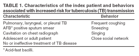 be undertaken. Index patients with positive acid-fast bacillus (AFB) sputum-smear results or pulmonary cavities have