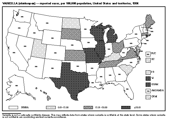 *** Varicella was taken off the nationally notifiable disease list in 1991. Many states continue to report these cases to CDC.