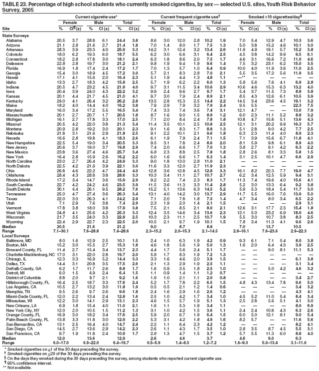 Interpretation: Since 1991, the prevalence of many health-risk behaviors among high school students nationwide has decreased. However, many high school students continue to engage in behaviors that place them at risk for the leading causes of mortality and morbidity. The prevalence of many health-risk behaviors varies across cities and states.