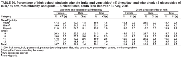 †† Refers to 100% fruit juice, green salad, potatoes (excluding French fries, fried potatoes, or potato chips), carrots, or other vegetables.