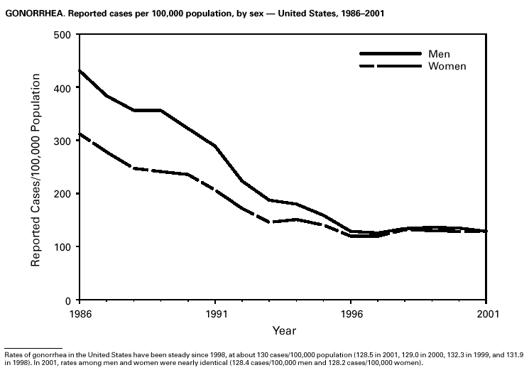 1. CDC. Sexually transmitted disease surveillance 2001. Atlanta: US Department of Health and Human Services, Public Health Service, CDC, 2002.