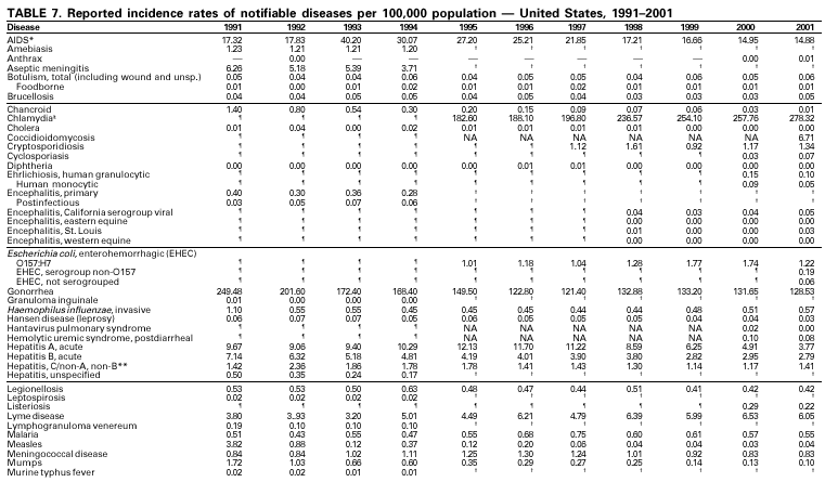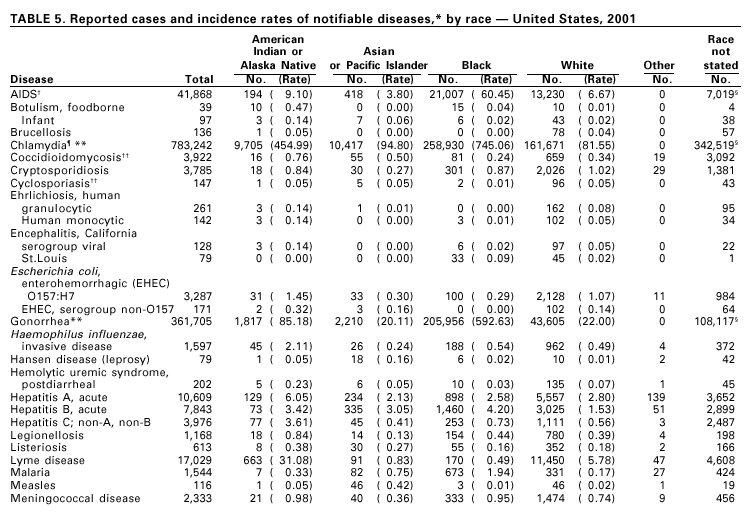 Summary of Notifiable Diseases --- United States, 2001