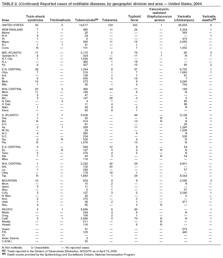 CDC. Summary of notifiable diseases, United States, 2004. MMWR 2004;53(53) (in press).