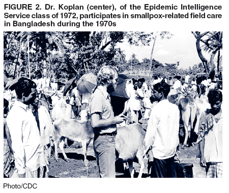 The 50th anniversary of the Epidemic Intelligence Service (EIS), a year-long celebration starting in February 2001, provided another opportunity to reflect on past successes (2). For the agency's premier cadre of epidemiologists, known worldwide for their esprit de corps and service on the front lines (Figure 2), the recognition illuminated a half-century of work in responding to thousands of public health threats around the globe, from polio to toxic shock, asthma to Ebola. The EIS began during the Cold War as a response to the threat of biological warfare and manmade epidemics. In its 50th year, the EIS came full circle when called on to respond to the terrorist attacks in the fall of 2001.