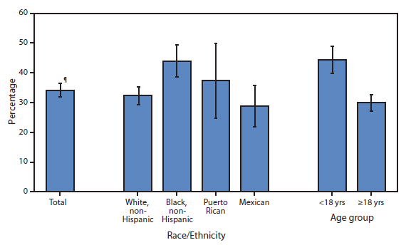 § Estimates are based on household interviews of a sample of the U.S. civilian noninstitutionalized population. Denominators for each category exclude persons for whom data were missing.