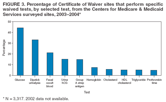 Medicare & Medicaid Services and studies funded by CDC during 1999--2003 evaluated testing practices in sites holding a