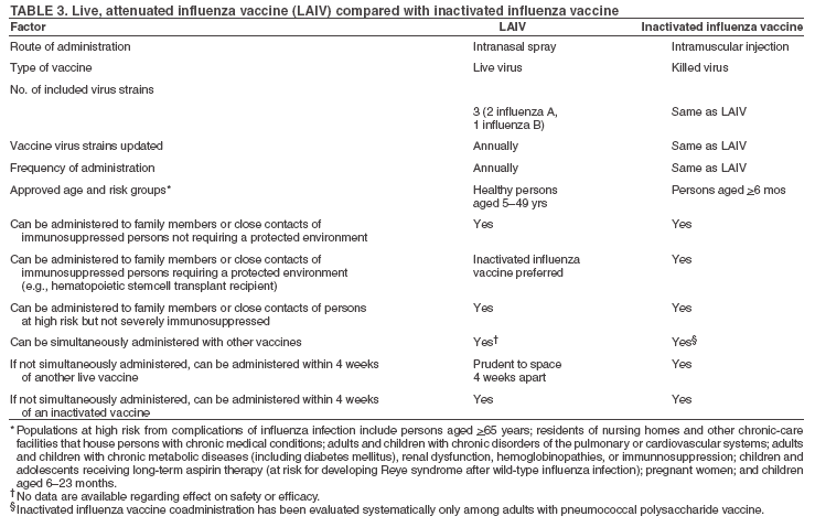 Recommendations for Using Inactivated and Live, Attenuated Influenza Vaccines