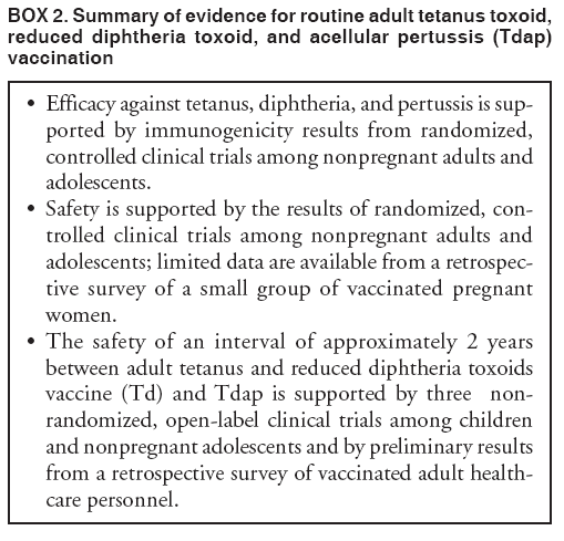(Table 2) provide background information on pertussis and extensive discussion regarding the safety and immunogenicity of Tdap
