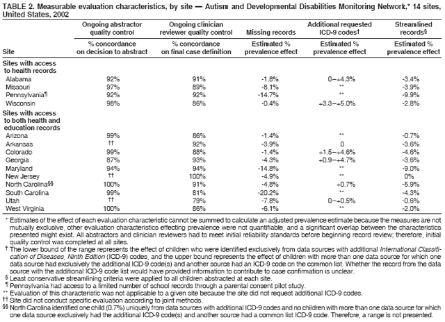 Persons using assistive technology might not be able to fully access information in this file. For assistance, please send e-mail to: mmwrq@cdc.gov. Type 508 Accommodation and the title of the report in the subject line of e-mail. Evaluation of a Methodology for a Collaborative Multiple Source Surveillance Network for Autism Spectrum Disorders --- Autism and Developmental Disabilities Monitoring Network, 14 Sites, United States, 2002Kim Van Naarden Braun, PhD1