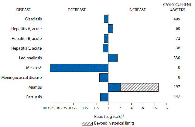 Figure I Selected notifiable disease reports, United States, comparison of provisional 4-week totals November 12, 2016, with historical data