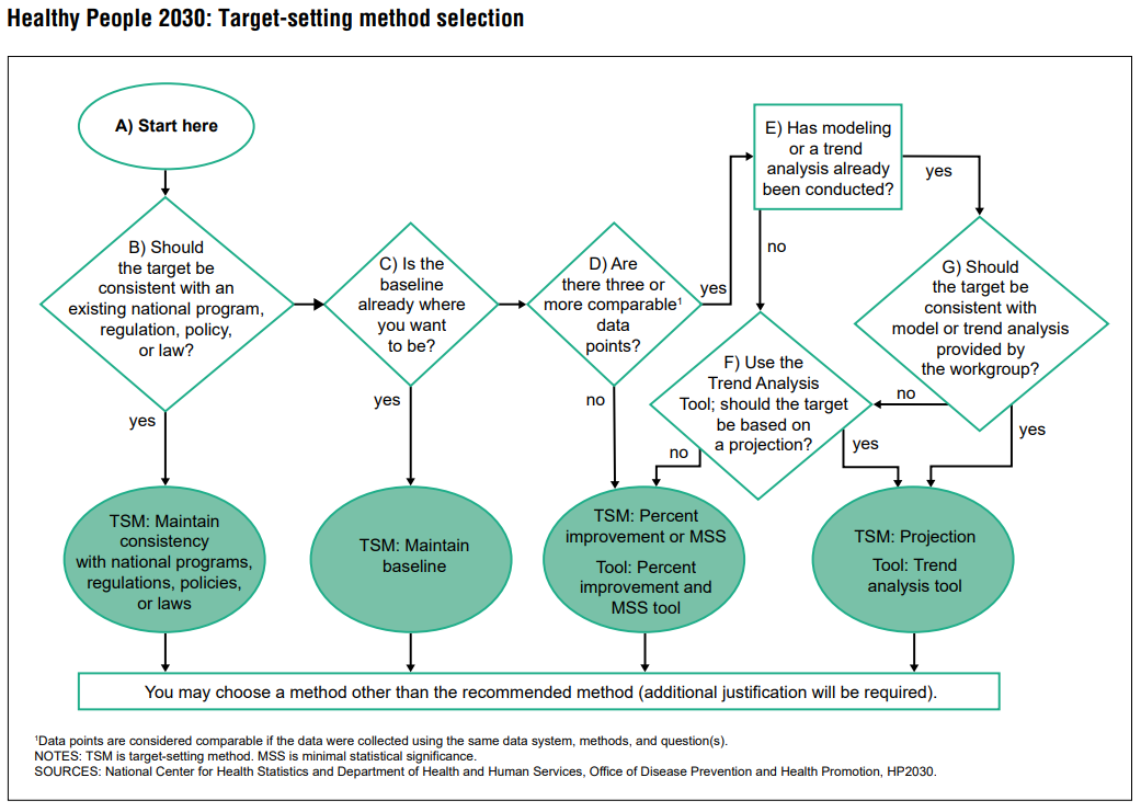 For a list and description of the six Healthy People 2030 target-setting methods, see the Healthy People 2030 website.