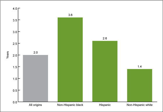 Figure 1. Increase in life expectancy at birth, by race and Hispanic origin: United States, 2000–2014