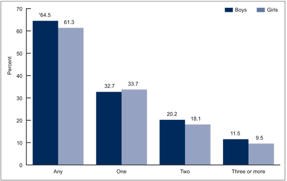 - A higher percentage of boys (64.5%) than girls (61.3%) consumed at least one sugar-sweetened beverage. Differences between boys and girls in the consumption of one, two, or three beverages or more were not significant.
