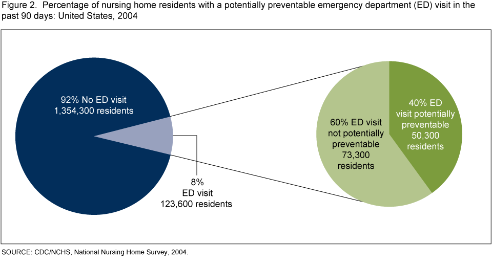 Caffrey C. Potentially preventable emergency department visits by nursing home residents: United States, 2004. NCHS data brief, no 33. Hyattsville, MD: National Center for Health Statistics. 2010.