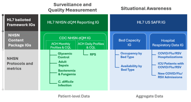 - Derived from and comply with NHSN’s HL7 balloted Framework IGs