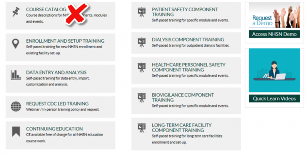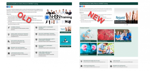 We have listened to your feedback and made a few changes to the NHSN Training website. Here are a list of a few major changes: