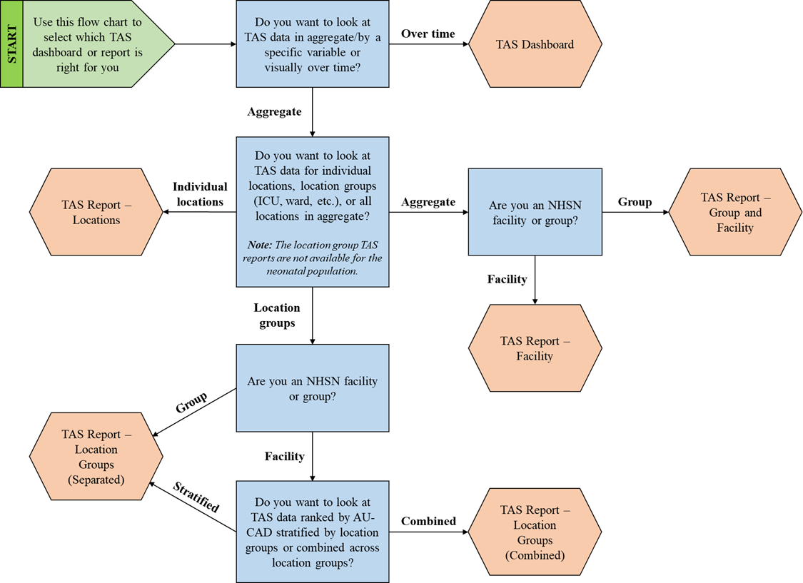 - Do you want to look at TAS data for individual locations, location groups (ICU, ward, etc.), or all locations in aggregate? Note: The location group TAS reports are not available for the neonatal population.