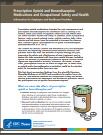 This fact sheet summarizes findings from the scientific literature [Kowalski-McGraw et al. 2017] and provides information from relevant CDC and National Institute for Occupational Safety and Health (NIOSH) publications for employers and healthcare providers about the prescription use of opioids and benzodiazepines.