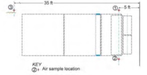 With the sprays operating, flows were measured at the curtain side (location 1) and off-curtain side (location 2) of the face (Figure 3).