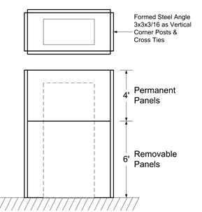 Comments: Initial panel designs were found unacceptable: Panels of 16-gauge galvanized steel backed with 1-in.-thick glass fiber duct insulation were found to rattle, and the glass fiber became pulverized by vibration and became unglued.