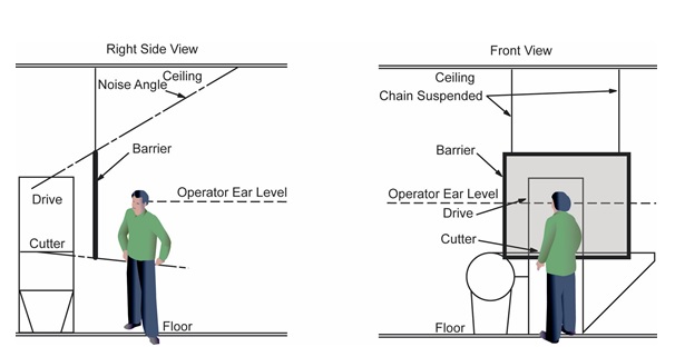 On the basis of discussions with management, it was determined that noise control should take the form of a barrier wall that would block the sound path from the cutting assembly to the operator, rather than machine redesign. The client in this case sought to reduce the sound level to a maximum of 85 dBA at the operator position.