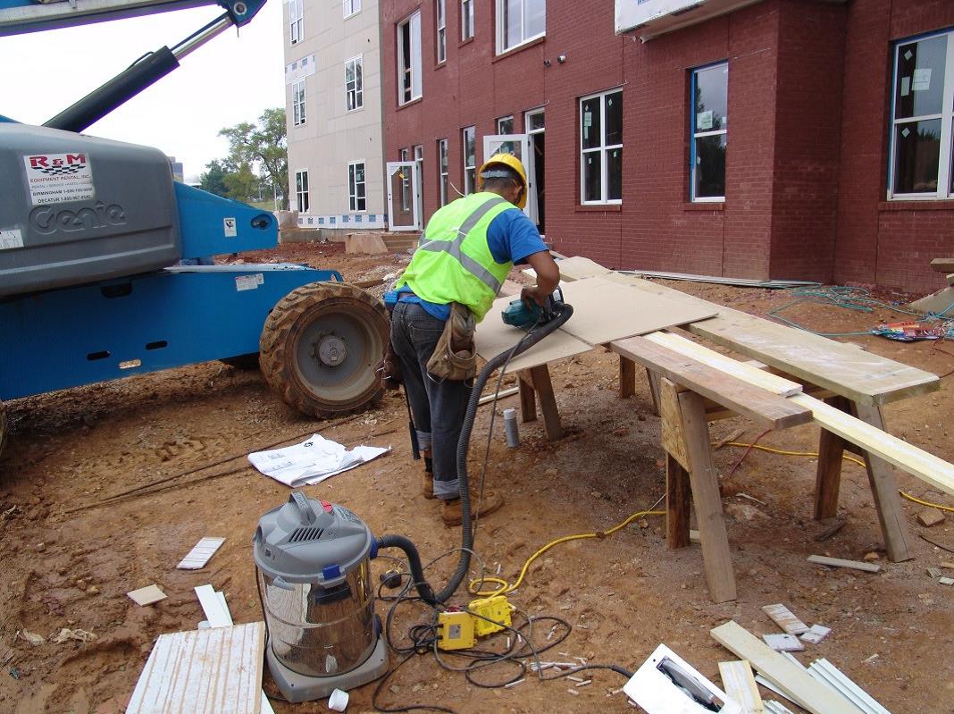 Cutting fiber-cement siding with power saws, crystalline silica exposure