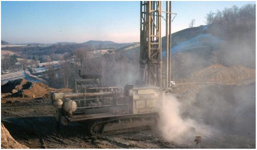 | Breathing dust that contains crystalline silica can lead to the development of silicosis, a deadly lung disease. No effective treatment exists for silicosis, but it can be prevented by controlling workers’ exposure to dust containing crystalline silica. Exposure to crystalline silica has also been linked to lung cancer, kidney disease, reduced lung function, and other disorders. Rock drilling before blasting for highway construction may generate a large amount of dust containing crystalline silica. Also, rock drilling for other reasons during construction such as site preparation, pipeline installation, or water well drilling may generate hazardous dust (see Figure 1). Acute and accelerated cases of silicosis have been reported in rock drillers. It has been noted that a drill operator working at a building site where no dust controls were used was exposed to 16 times the NIOSH recommended exposure level (REL). | |