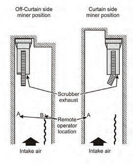 • Scrubber exhaust must be on the same side of the entry as the line curtain/tubing to allow scrubber exhaust to discharge directly into return air [Colinet and Jankowski 1996].