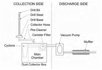 Maintaining the dust collector system. Hoses and gaskets should be checked for leaks. Smoke tubes can be used to show where leaks occur. Checks should also be made for loose hose connections and damaged compartment door gaskets. Vacuum pressure at the drill head should be checked daily by using an approved pressure gauge to maintain manufacturer’s vacuum specifications for proper airflow listed on the approval plate.