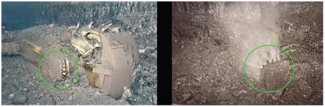 Figure 7. Crescent sprays located on shearer ranging arm.