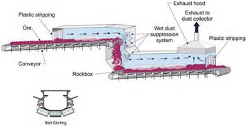 At mineral processing operations, conveyors are the major component used to transfer ore from one process to another. A conveyor can generate significant quantities of respirable dust and be one of the greatest sources of dust emissions within an operation. There are four main areas of dust generation and liberation from conveyors:
