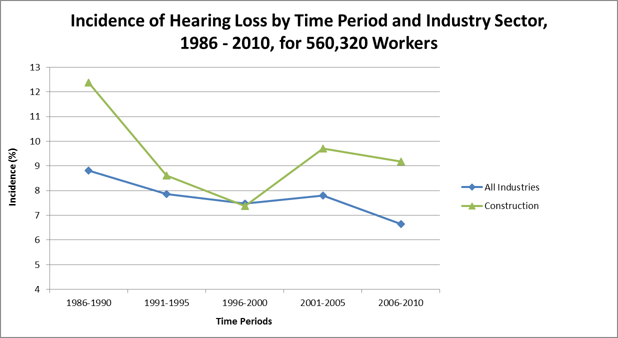 - The incidence for Construction decreased 3% over 25 years (1986-2010) as compared with a 2% reduction for all industries.